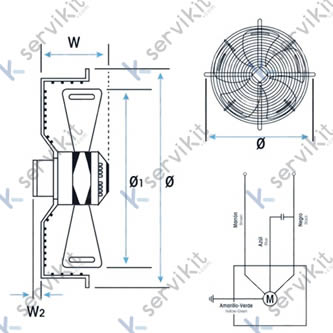 Diámetro aspas (Ø1): 400 mm